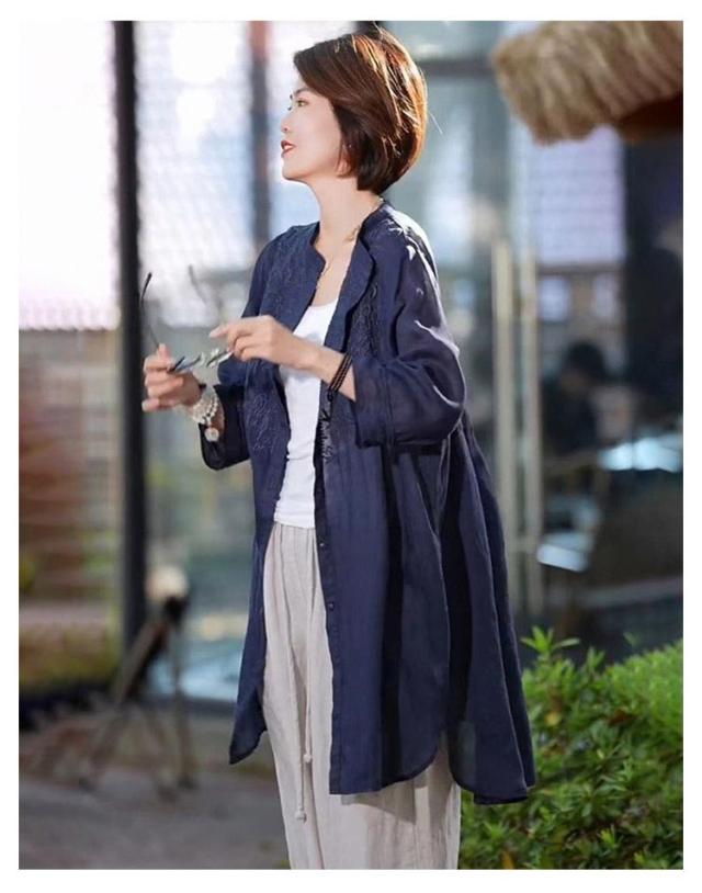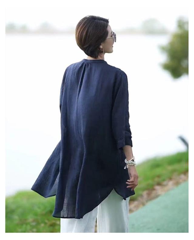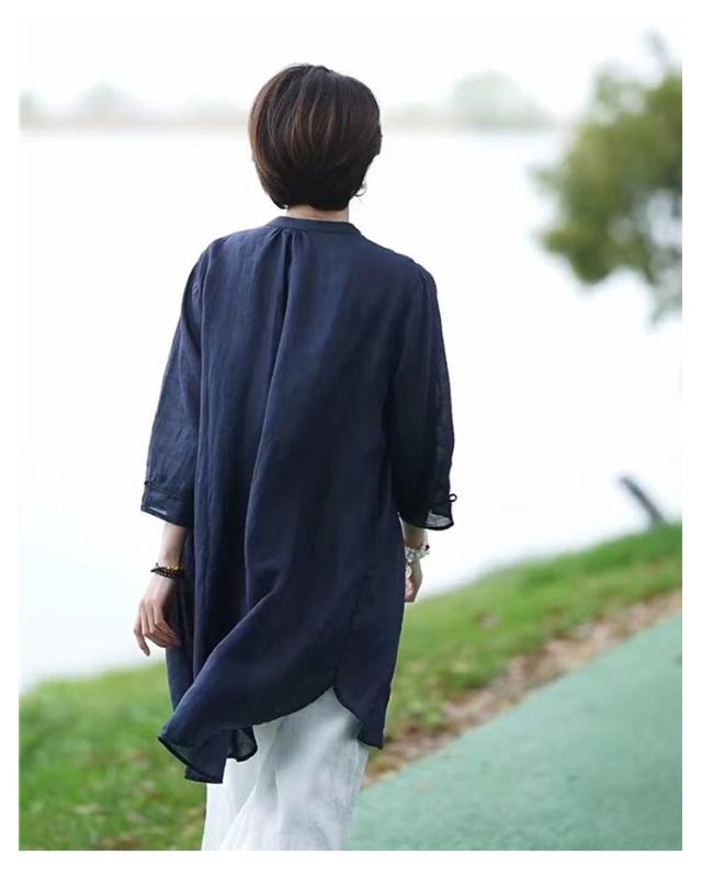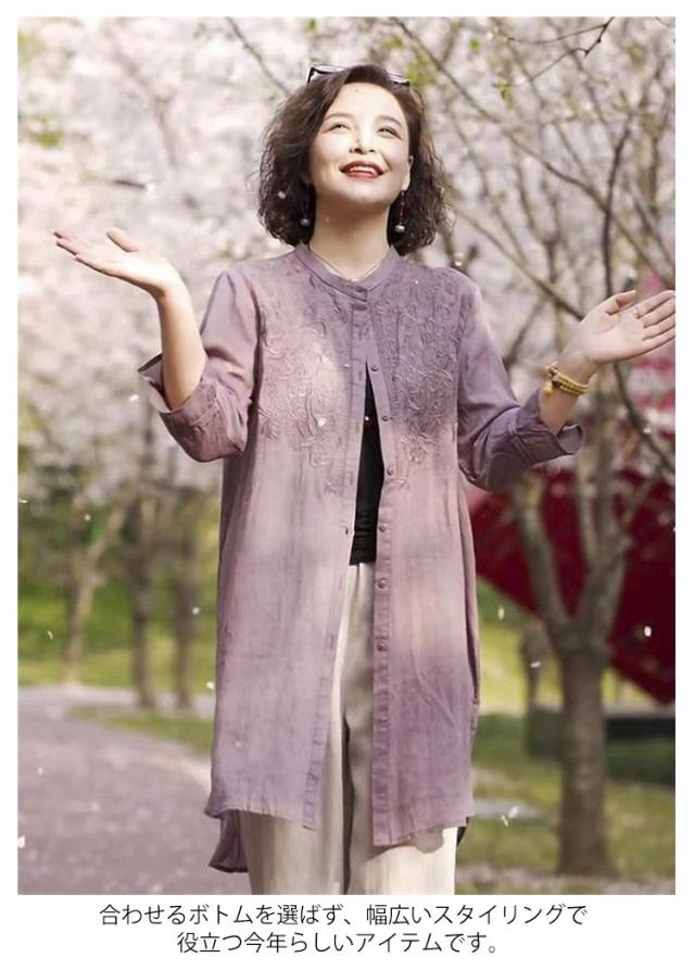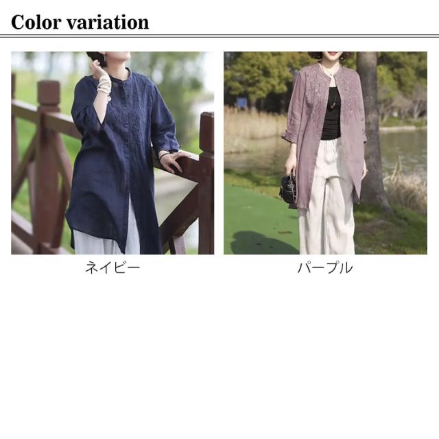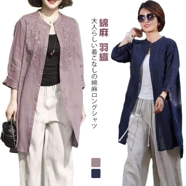 薄手 綿麻 チュニック 立ち襟 ロングシャツ 長袖 ナチュラル ロング丈 春夏 秋物 長袖チュニック バンドカラー シャツ 羽織 スタンドカラー 長袖 ロング 開襟 綿麻風 ロング丈 無地 シャツ 羽織りもの 大きいサイズ