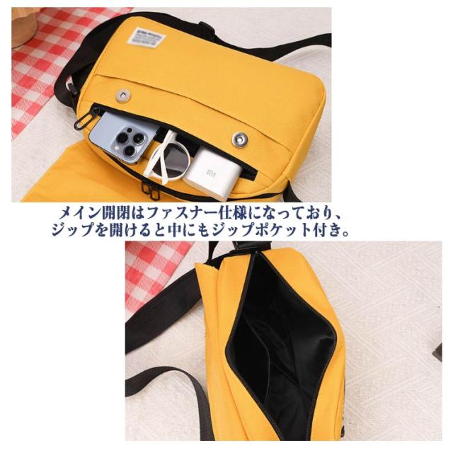 | ちょっとしたお出かけやお散歩などに便利なミニショルダーバッグです。 前後にもジップポケットが付いているので小物の収納にも困りません。 メイン開閉はファスナー仕様になっており、ジップを開けると中にもジップポケット付き。 外出に丁度良いサイズ感、コンパクトでも大容量で必要な小物をスッキリ収納! 軽量、耐摩耗性と耐久性に優れており、長時間の使用が可能で、汚れたら手洗いもOK! メンズ、レディース問わず、通勤・通学などの普段使い、ショッピング、旅行…と様々なシーンでお使い頂けます | |