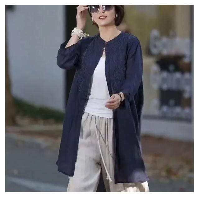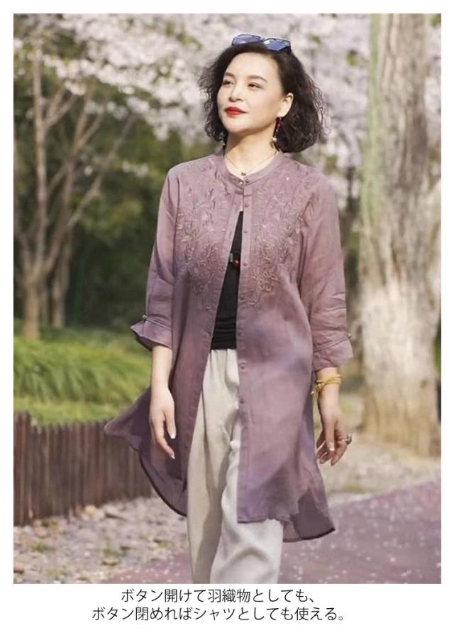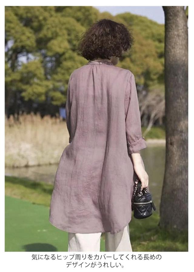 シャツ スタンドカラー 開襟 長袖 春夏 綿麻 薄手 長袖 ロングシャツ 秋物 長袖チュニック バンドカラー ナチュラル ロング丈 レディース 立ち襟 ロング ロング丈 チュニック 綿麻風 無地 シャツ 羽織りもの 大きいサイズ