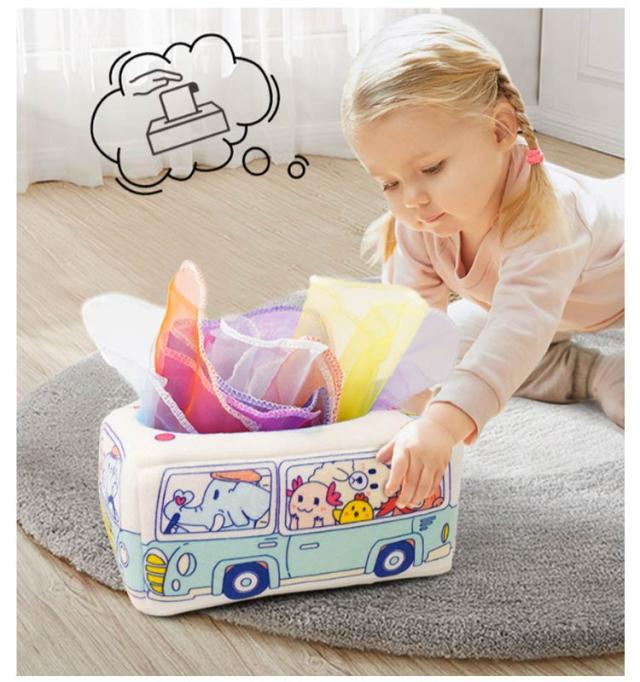 赤ちゃん 可愛い 赤ちゃん ベビー向けおもちゃ 赤ちゃんのおもちゃ キッズ おもちゃ ベビー ティッシュボックス プレゼント 赤ちゃん布絵本 おもちゃ 車 ティッシュケース ティッシュ 指先訓練 聴覚発達 色認知 幼児 10枚スカーフ付き 誕生日 モンテッソーリおもちゃ