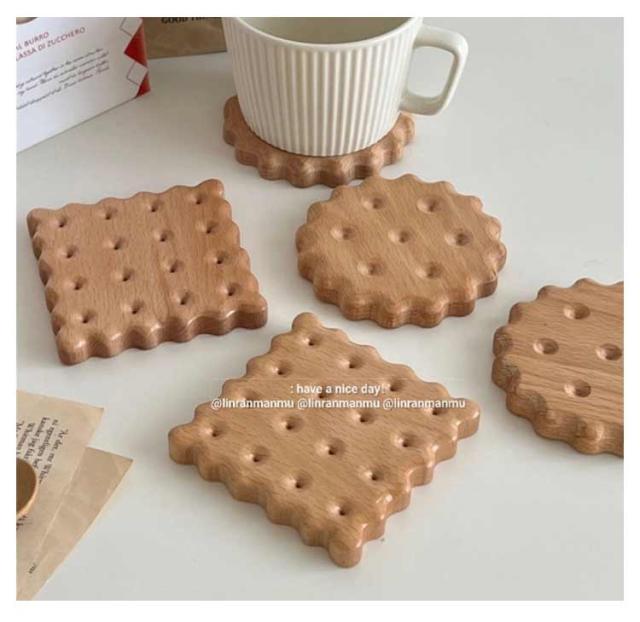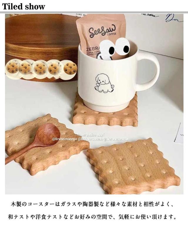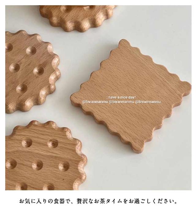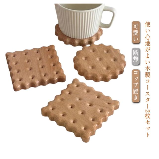 ビスケットデザイン 木製 コースター 天然木 おしゃれ 北欧 プレート 可愛い 丸型 コースター 角型 洗える 2枚セット おしゃれ コンパクト かわいい インテリア 雑貨 コップ置き 断熱 ギフト プレゼント