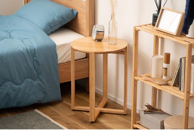 サイドテーブル サイドテーブル ナイトテーブル テーブル 木製 天然木 北欧 おしゃれ 円 丸 ラウンド アジャスター付き かわいい 新生活 オールシーズン(代引不可)【送料無料】