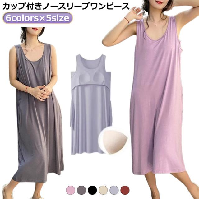 ワンピース カップ付き ノースリーブ 部屋着 ルームウェア カップ付き パジャマ ロング ロング丈 ワンピース ロングワンピース 夏 Tシャツワンピース ロング丈 夏 部屋着 大きいサイズ ゆったり 体型カバー 涼しい ひんやり