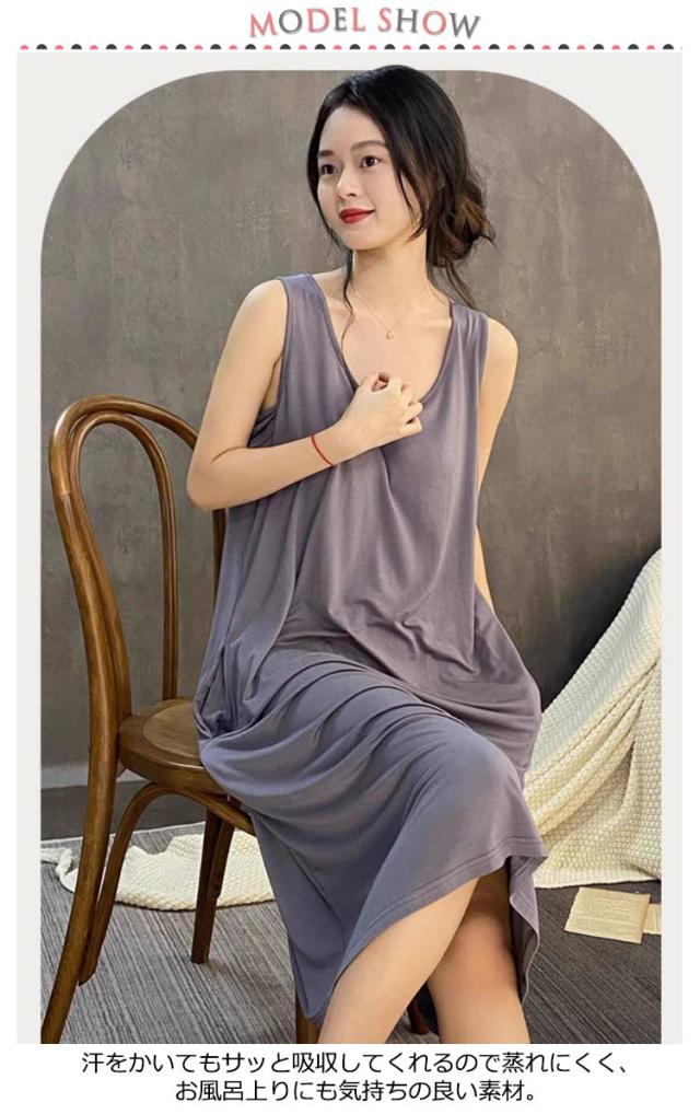 | 6colors×5size! カップ付きノースリーブワンピース 汗をかいてもサッと吸収してくれるので蒸れにくく、 お風呂上りにも気持ちの良い素材 肌触りが柔らかく気持ち良い生地で、吸汗性にも優れており | |