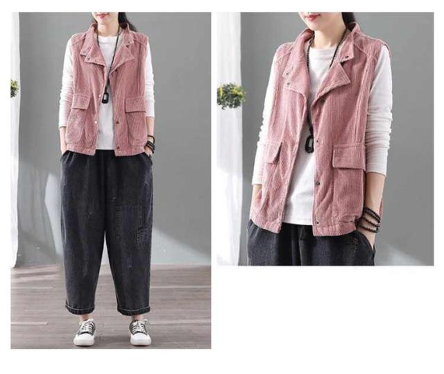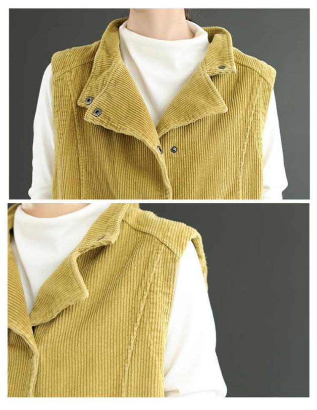 コーデュロイベスト レディース レディース ライトアウター ノースリーブ ベスト もこもこ 袖なし 前開き 暖か 羽織り コーデュロイ おしゃれ シンプル 冬 部屋着 あったか カジュアル 春 秋 ポケット付き 大きいサイズ 体型カバー 無地 コーデュロイベスト 大人女性