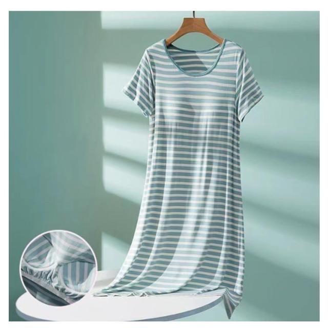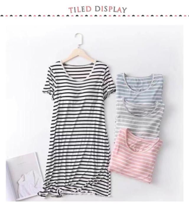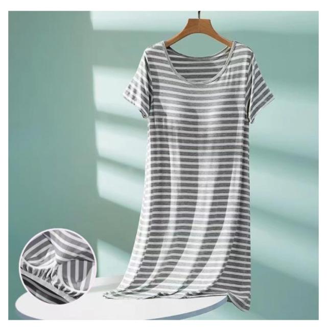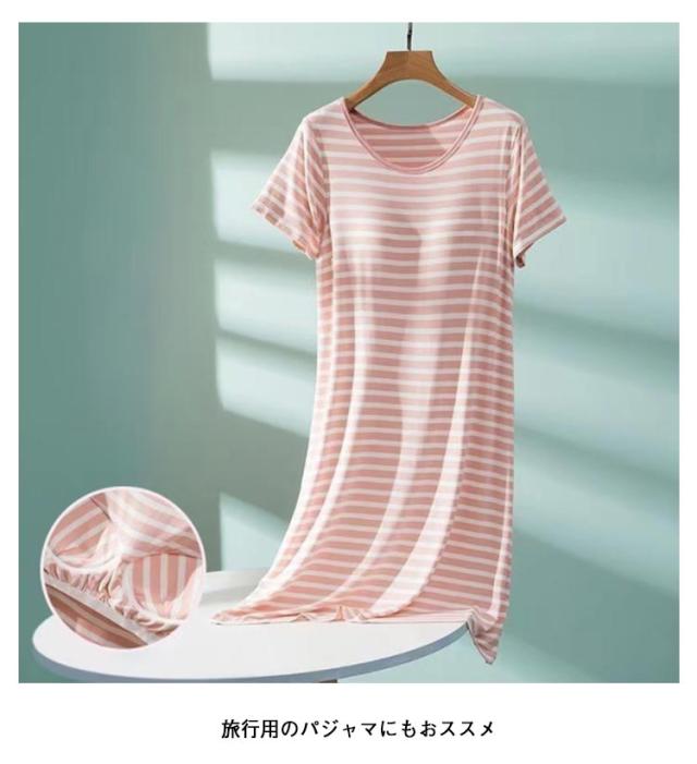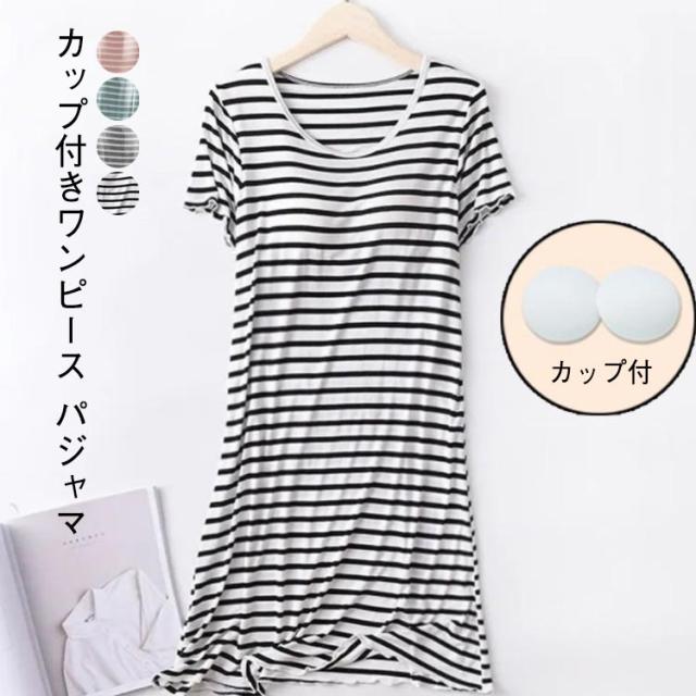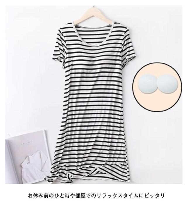 ルームウェア カップ付き 夏 ワンピース ナイトウェア レディース マキシワンピ ロングTシャツ ワンピース 部屋着 パジャマ ボーター ホームウェア カップ付き 夏用 シンプル 半袖 ストライプ ボーダー きれいめ カジュアル 大きいサイズ かわいい