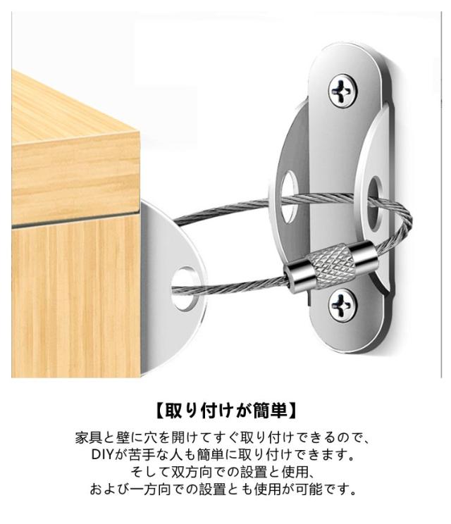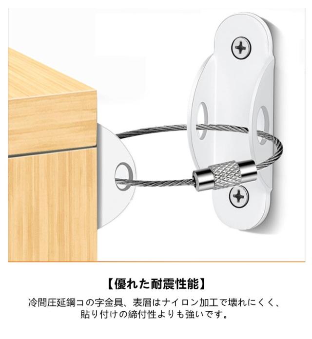 地震対策 転倒防止金具 【4組セット】 耐震金具 家具転倒防止 転倒防止 防災用品 家具 固定 本棚 ワイヤー 子供安全グッズ 簡単取付 防災グッズ 【4組セット】 固定金具 コーナーラック テレビラック タンス テーブル 長さ調整可能