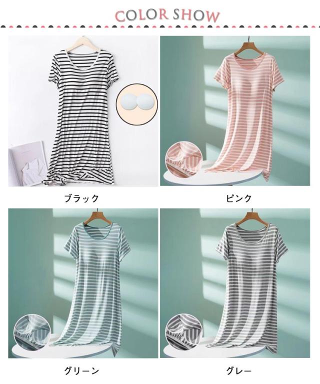 ルームウェア カップ付き ナイトウェア 夏 夏用 レディース ホームウェア ワンピース 半袖 部屋着 カップ付き マキシワンピ ロングTシャツ シンプル ボーター パジャマ ワンピース ストライプ ボーダー きれいめ カジュアル 大きいサイズ かわいい