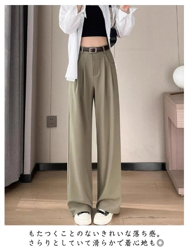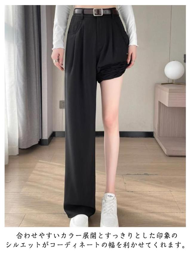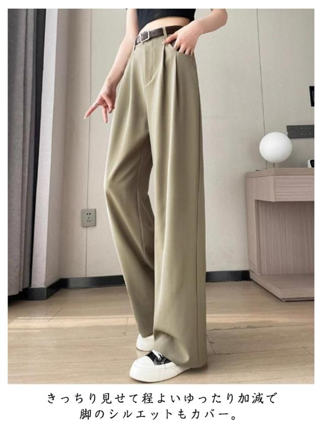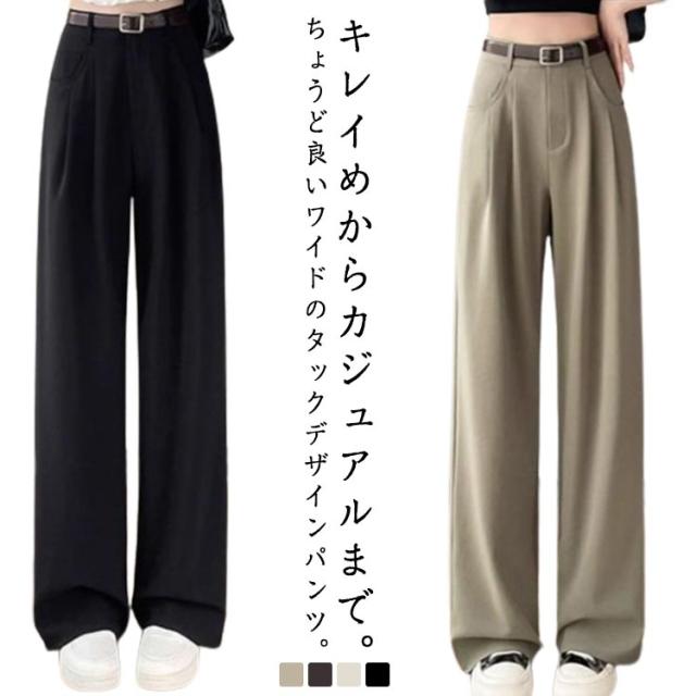 タックワイドパンツ パンツ ガウチョパンツ レディース ワイドパンツ 大きいサイズ 春 秋 チノパンツ ハイウエスト タック スラックス 美シルエット タックパンツ ボトム パンツ パンツ ワイド ストレート