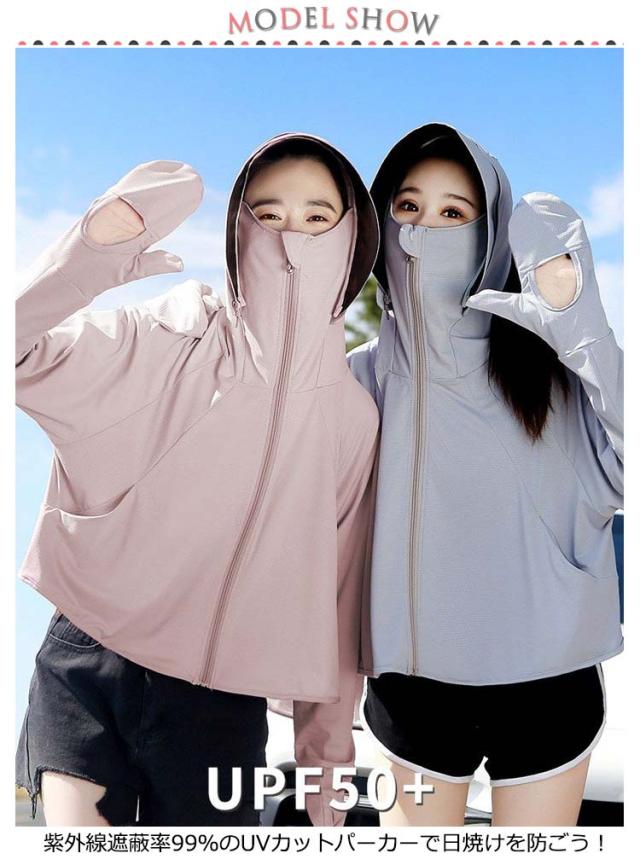 パーカー UV レディース 冷感 吸湿 長袖 UVカット ラッシュガード メッシュ 素材 通気口 手袋 つば 取り外し 日焼け防止 服 薄手 紫外線遮蔽率99% 速乾 紫外線対策 UPF50+ 指穴
