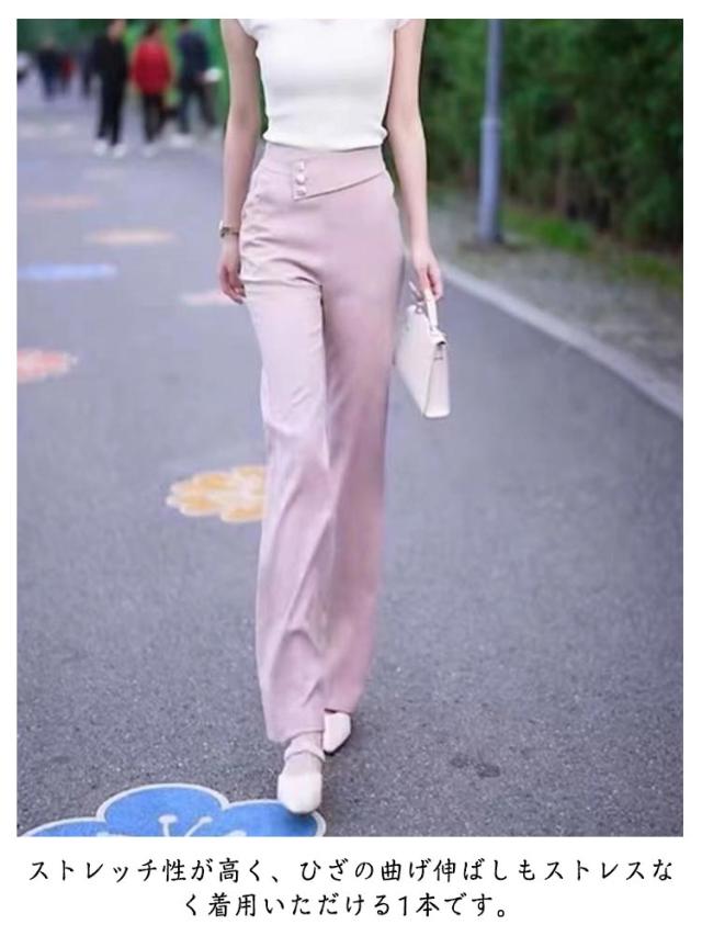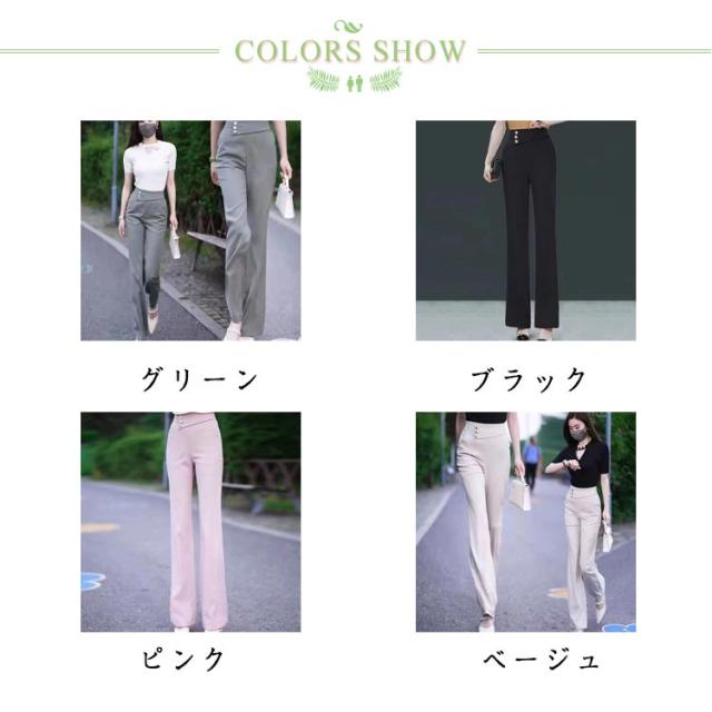 サラサラ レディース 落ち感 スラックス ロングパンツ パンツ ズボン フレアパンツ ボトムス 楽ちん 足長 ロング丈 ブーツカット スラックス 美脚 ハイウエスト 細見え セレモニー 着痩せ フレアパンツ きれいめ グリーン ブラック ピンク