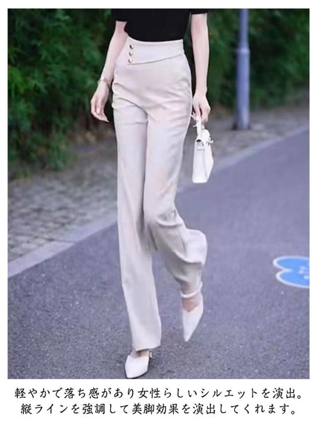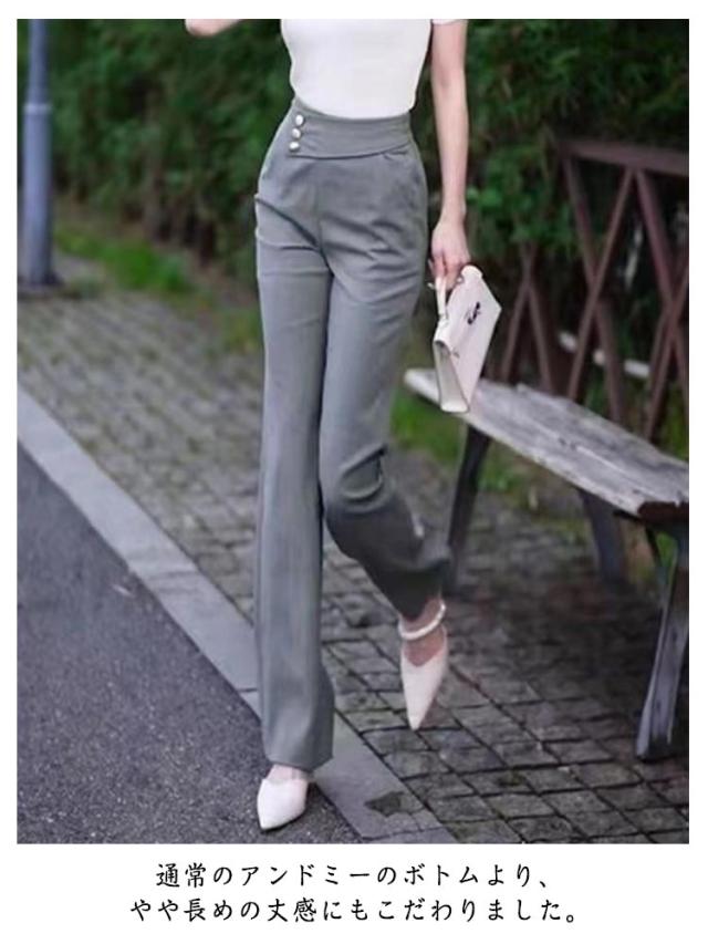 | 薄手生地でさらっと美脚に♪裾へ向かってほんのり広がるフレアパンツ。 軽やかで落ち感があり女性らしいシルエットを演出。縦ラインを強調して美脚効果を演出してくれます。 通常のアンドミーのボトムより、やや長めの丈感にもこだわりました。 何より細見えする「着痩せシルエット」がポイント!視線をウエストに集めることで、メリハリの効いたスタイリングが完成します。 ストレッチ性が高く、ひざの曲げ伸ばしもストレスなく着用いただける1本です。 | |