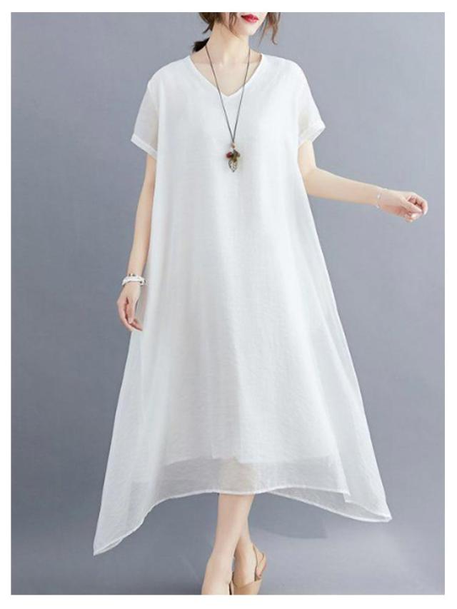 ワンピース レディース 二の腕カバー マキシワンピース Vネック 夏 ドルマン ふんわり ロングワンピース 半袖ワンピース ゆったり 体型カバー 涼しい マキシ丈 ホワイト 薄手 キレイめ Aライン 夏服 マタニティ ワンピース 半袖 イエロー ブラック ピンク ブルー