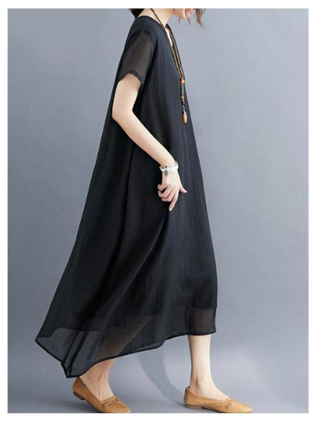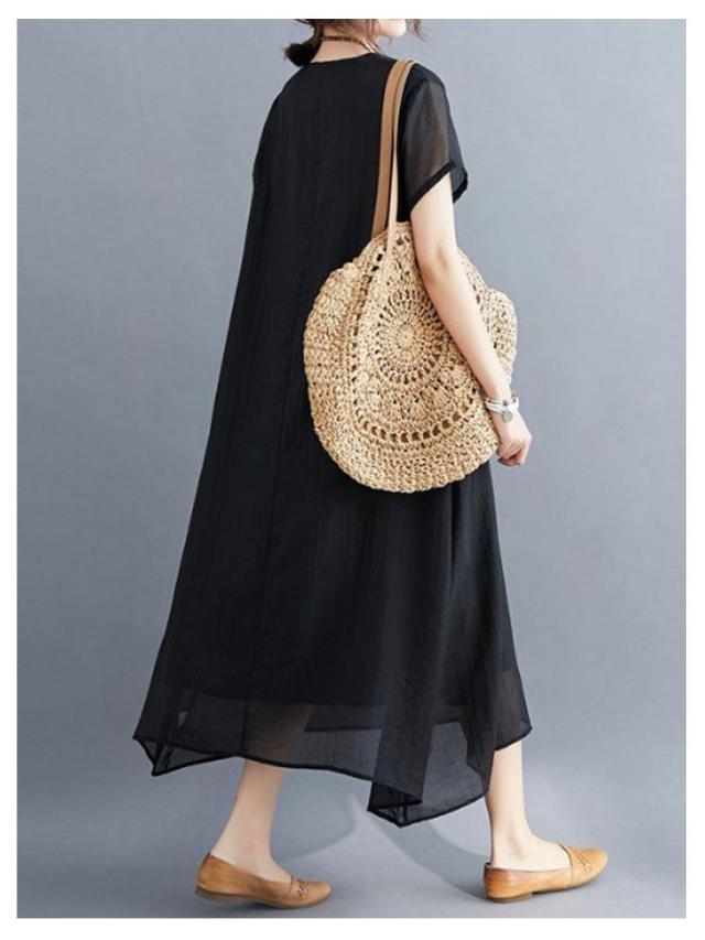 | クラシックな雰囲気漂う上品な半袖ワンピース。 たっぷりとした袖と裾にむかって広がるAラインのシルエットが上品な印象に。 柔らかな肌触りでナチュラルな印象の綿混素材を使用。さらりとした心地良い!夏場でも涼しく着て頂けます。 ゆったり楽な着心地で体型カバーを叶える!コクーンシルエットが気になる下半身もしっかりカバー◎ 1枚でコーディネートが完成します。 | |