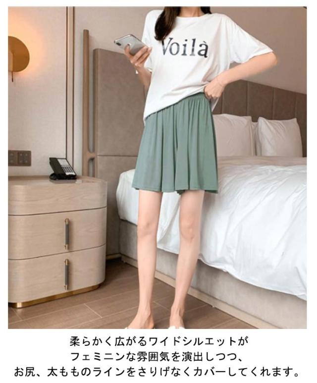 レディース カラーパンツ ショーパン 短パン ショートパンツ 短パン フレアパンツ ショートパンツ ショーツ シンプル ウエストゴム カジュアル 美ライン ゆったり ルームウェア 部屋着 ハイウェスト 薄手 涼しい トランクス レディース