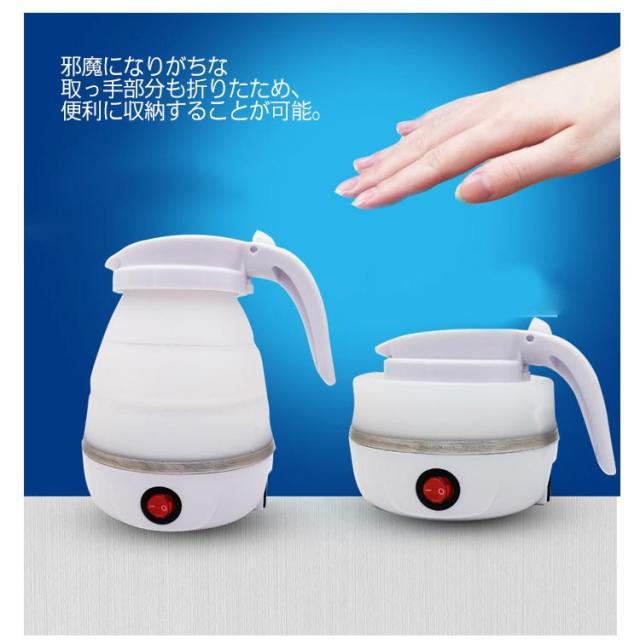 | 【安全安心】非常に柔らかい上に丈夫で、素材としても科学的に安定して安全と言われる食品レベルのシリコン素材を採用し、子供にも無害無毒です。 【折り畳める】軽い力で簡単にコンパクトに折りたたむことが出来ます。 邪魔になりがちな取っ手部分も折りたため、便利に収納することが可能。 また、電源コートも抜けるので、水入れるとき、邪魔にならなく、スペースを節約し携帯にもとても便利です。 【空焚き防止機能】空焚き防止機能と沸騰時自動電源OFF機能を搭載。本体素材は耐熱性の優れたポリカーボネイトを使用しています。お子様がいる場合にも安心でご利用いただける電気ケトルです。 【様々なシーンで活躍する】 旅行・出張のためだけじゃなくで、朝一番の白湯を沸かしたり、夕食にプラスする即席味噌汁を作ったりと、狭いキッチンでも簡単に収納出来ます日常生活で予想以上に普段使いに活躍中です。 | |