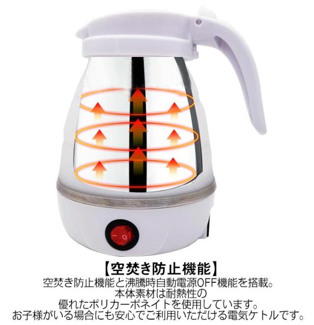 ケトル 電気ケトル 折りたたみ式 シリコン ケトル ケトル 保温 キャンプ アウトドア トラベルケトル 電気 家庭用 おしゃれ 折りたたみケトル 車中泊 水煮 600ml 湯沸かし器 断熱機能付き 電気ポット 携帯便利 旅行 出張 自宅