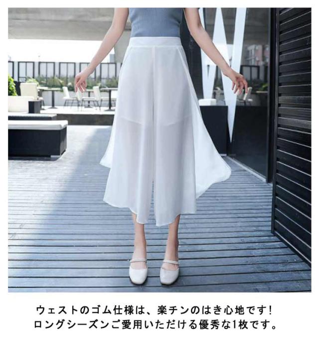 パンツ ふんわり サイドスリット シフォンパンツ ワイドパンツ ハイウエスト レディース ワイド ガウチョパンツ ワイドパンツ スカーチョ 無地 ボトムス スカンツ 大きいサイズ ウエストゴム 体型カバー スカート見え ブラック ピンク ホワイト