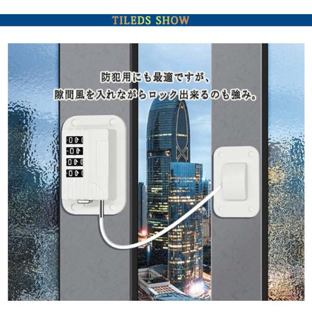 | 窓・引き戸用 ダイヤルワイヤーロック。窓や引き戸の補助用鍵、ロック。 防犯用にも最適ですが、隙間風を入れながらロック出来るのも強み。 暑い時に隙間を開けると心配。そんな時にこれで鍵が掛けれます。 お子様の安全にもペットの脱走防止にも。 ドア、窓、キャビネット、冷蔵庫、飲料水機すべて使用可能です。 | |