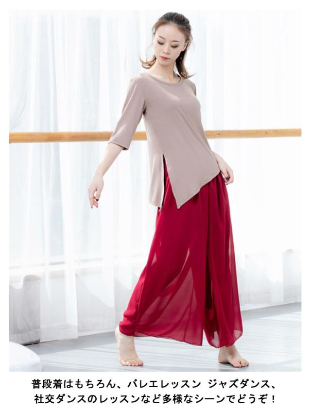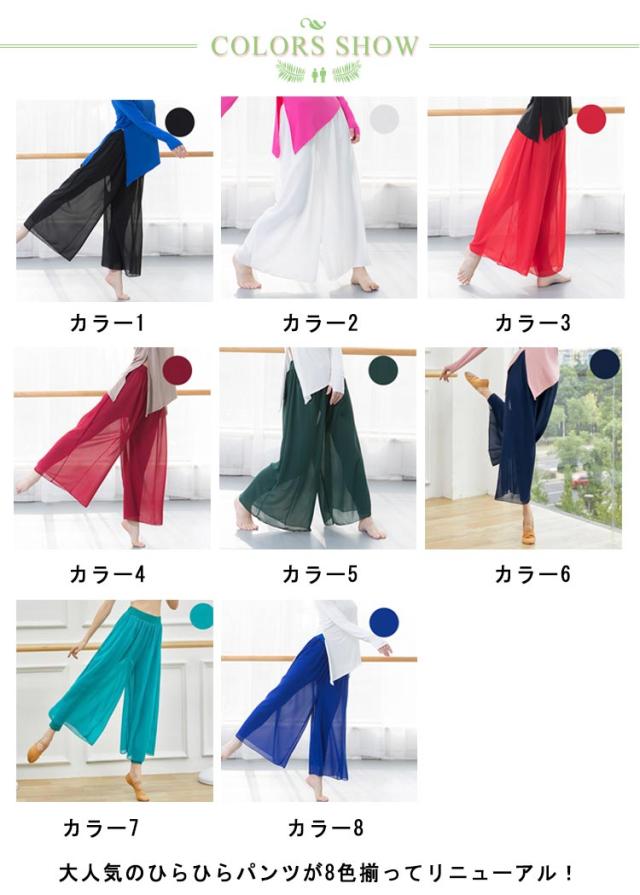 踊りパンツ ダンス 無地 レッスンパンツ スカーチョ フレアパンツ ワイドパンツ 美脚 シースルー スカンツ ガウチョ ヨガパンツ レッスンウェア レギンス付き 社交ダンス シフォン ヨガウェア 部屋着 ラテンダンス 春夏 ダンスウェア パンツ