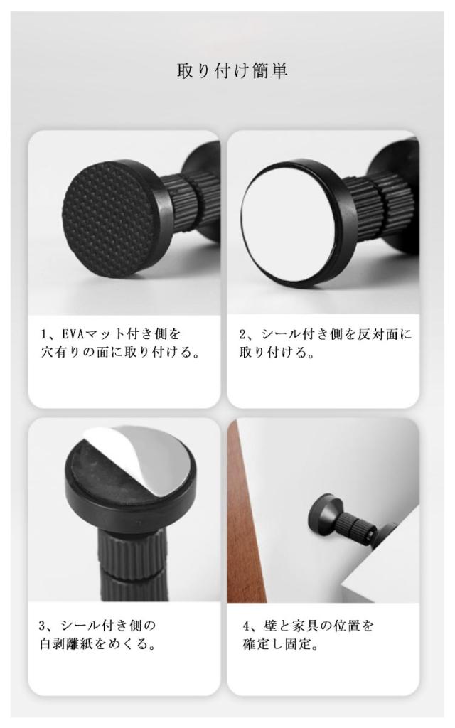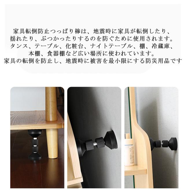 | 地震時の家具の転倒、揺れ、衝突を防ぐために、家具の転倒防止用プルロッドが使用されています。 家具と壁の間、家具と天井の間の狭いスペースに最適です。 家具転倒防止つっぱり棒は、地震時に家具が転倒したり、揺れたり、ぶつかったりするのを防ぐために使用されます。タンス、テーブル、化粧台、ナイトテーブル、棚、冷蔵庫、本棚、食器棚など広い場所に使われています。家具の転倒を防止し、地震時に被害を最小限にする防災用品です。 防震効果がより良く、天井や壁や家具を傷つけません、転倒防止つっぱり棒は高品質の素材で作られており、EVA保護パッドが付いてお、耐久性に優れています。 つっぱり式で取り付けカンタンな耐震ポール。耐久性に優れています。EVA保護パッドが付いてお適用高さ4.2~11cm。 適用高さ4.2~11cm。転倒防止 突っ張り棒は必要に応じてナットを出し入れすることで、高さを自由に調整できます。 短い 突っ張り棒は高品質の素材で作られており、耐久性に優れています。EVA保護パッドが付いており、防震効果がより良く、天井や壁や家具を傷つけません。 | |