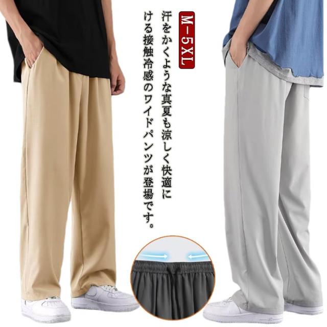 | M-5XL!汗をかくような真夏も涼しく快適に履ける接触冷感のワイドパンツが登場です。 暑い夏も涼しく快適!ひんやりと涼しい肌触りの接触冷感素材の生地で真夏の蒸し暑さでもストレスを軽減してくれます。 ウエストはゴム&紐仕様のイージーパンツになっており締め付けが少なくリラックスして着用頂けます。 無地でシンプルなデザインだからどんなトップスとの相性もバツグン。 | |