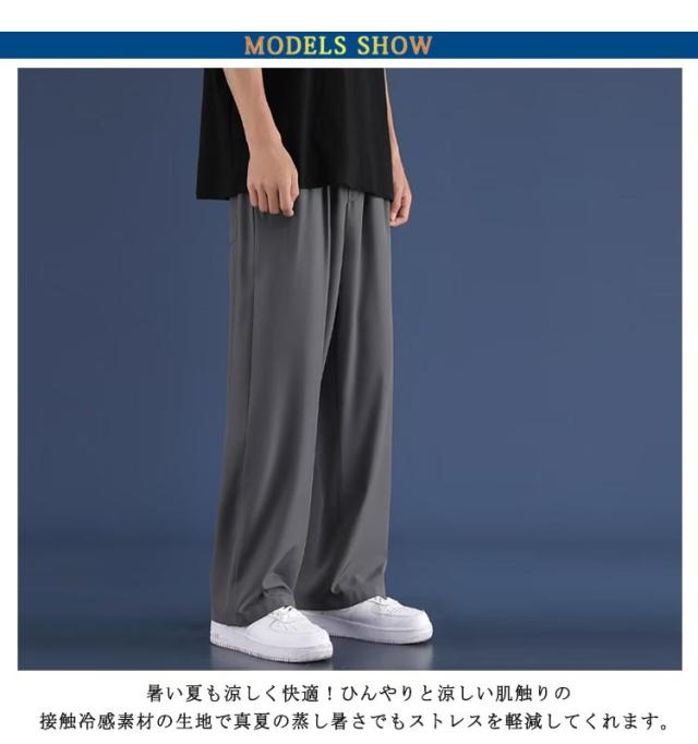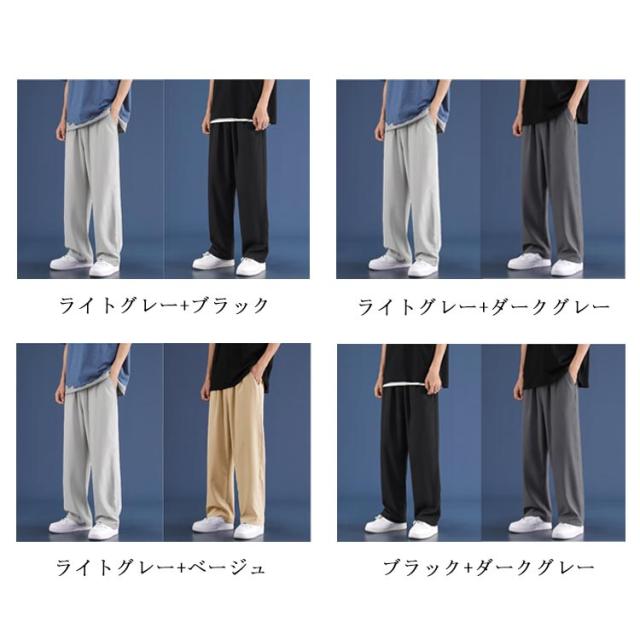 メンズ 2枚セット 接触冷感 イージーパンツ 薄手 夏用 冷感パンツ アイスシルクパンツ ワイドパンツ ストレッチパンツ 吸水速乾 ひんやり ストレートパンツ ロングパンツ 涼しい カジュアルパンツ ゴルフパンツ ゆったり