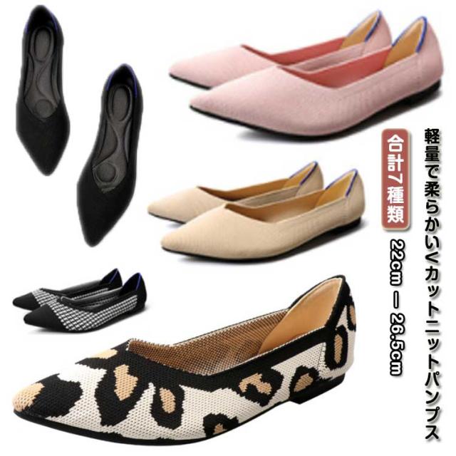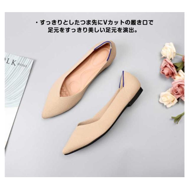 パンプス 痛くない ぺたんこ 軽量 婦人靴 ニットパンプス ニットパンプス フラットシューズ 靴 ポインテッドトゥ 脱げない 通気性 歩きやすい フォーマル 入学式 卒業式 発表会 通学