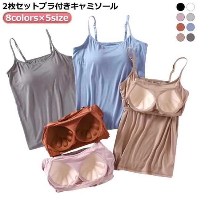 キャミ キャミソール キャミソール キャミソール 冷感 2枚セットブラ付き 接触冷感 カップ付き 夏 インナー ノースリーブ 肌着 レディース ひんやりタンクトップ トップス 下着 キャミソールセット タンクトップ黒