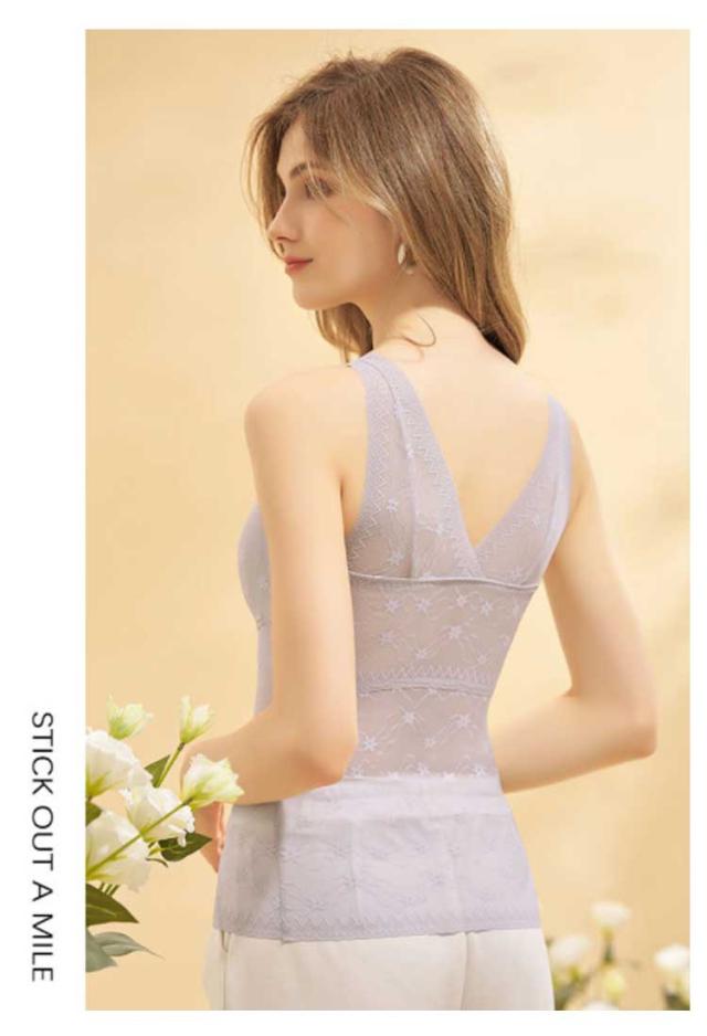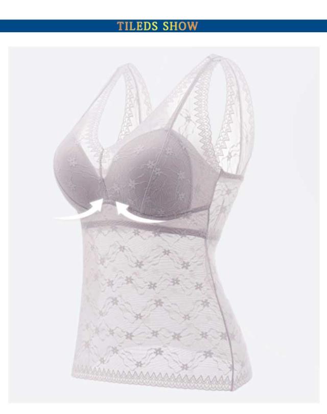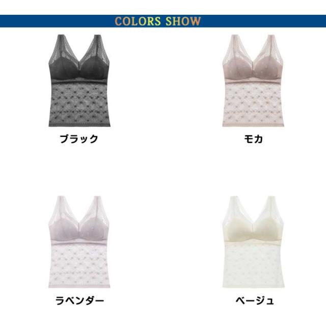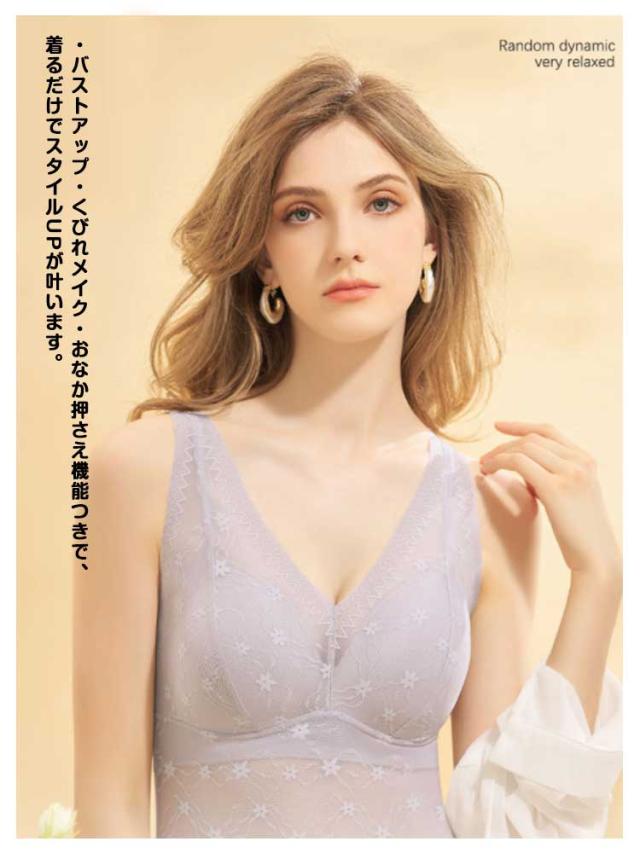 インナー ボディシェイパー 胸を小さく見せる ブラトップ 体型カバー 補正下着 Vネック タンクトップ キャミソール ノンワイヤー レース インナー 引き締め ウエスト くびれ お腹おさえ シルク配合