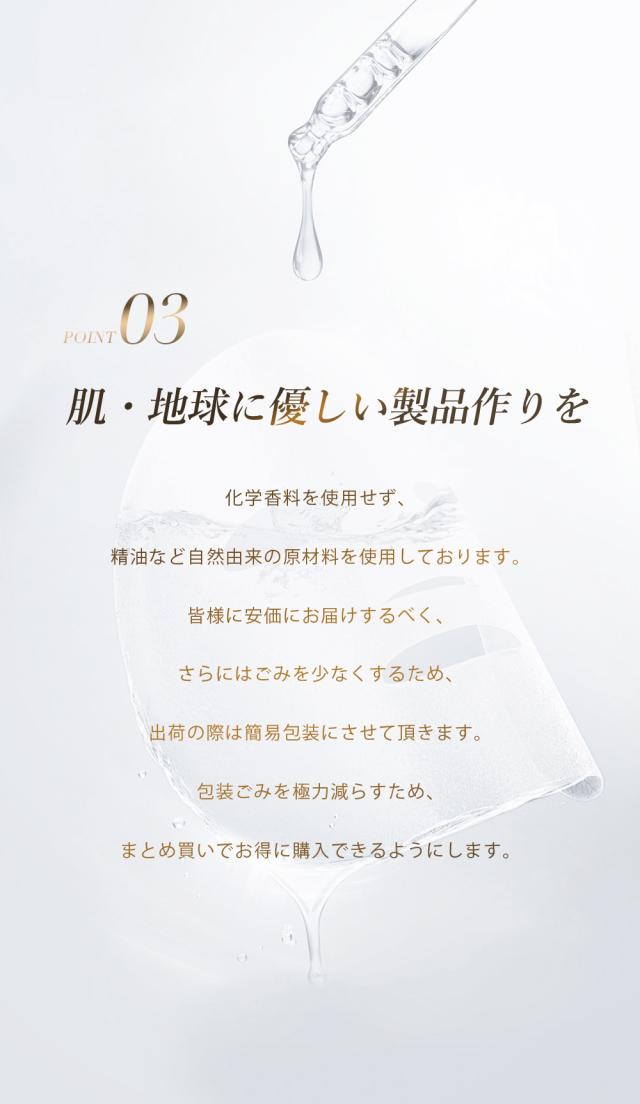 3.肌に残った美容液を優しく押し込むように肌になじませてください。肌のうるおいを保つために毎日のご利用をおススメします。使用上の注意