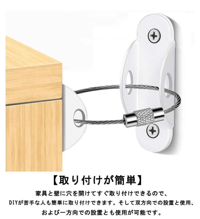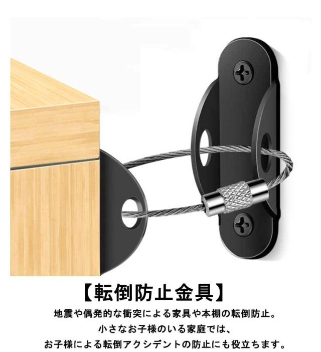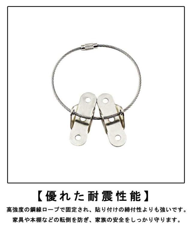| 家具や本棚の転倒防止と家族の安全保障に不可欠の小物です! 【転倒防止金具】地震や偶発的な衝突による家具や本棚の転倒防止。小さなお子様のいる家庭では、お子様による転倒アクシデントの防止にも役立ちます。 【優れた耐震性能】高強度の鋼線ロープで固定され、貼り付けの締付性よりも強いです。家具や本棚などの転倒を防ぎ、家族の安全をしっかり守ります。 【取り付けが簡単】家具と壁に穴を開けてすぐ取り付けできるので、DIYが苦手な人も簡単に取り付けできます。そして双方向での設置と使用、および一方向での設置とも使用が可能です。 【使用範囲が幅広い】本棚、コーナーラック、タンステレビラック、脚立、食器棚や収納棚など広い場所に使われています。 | |