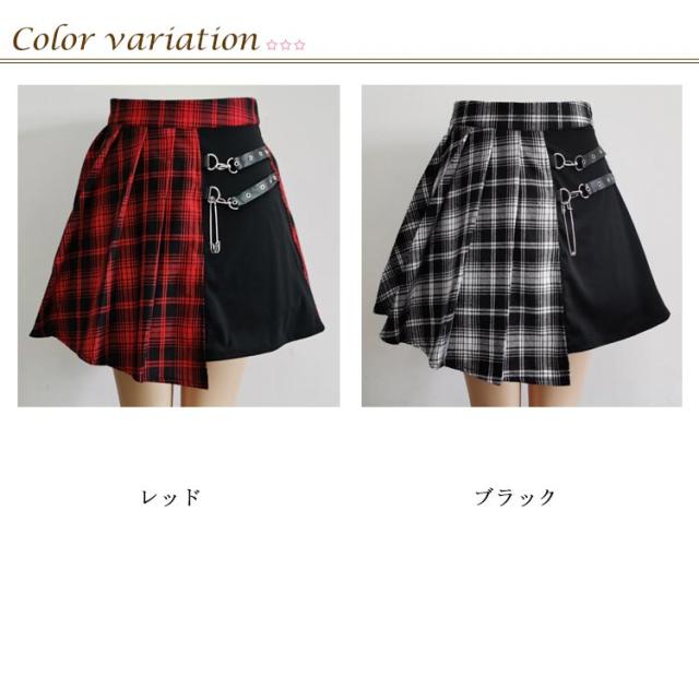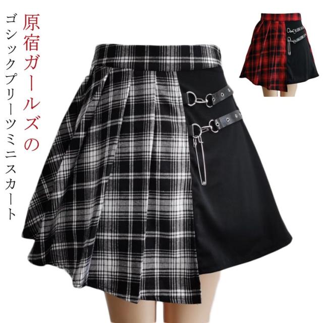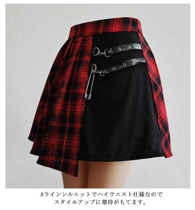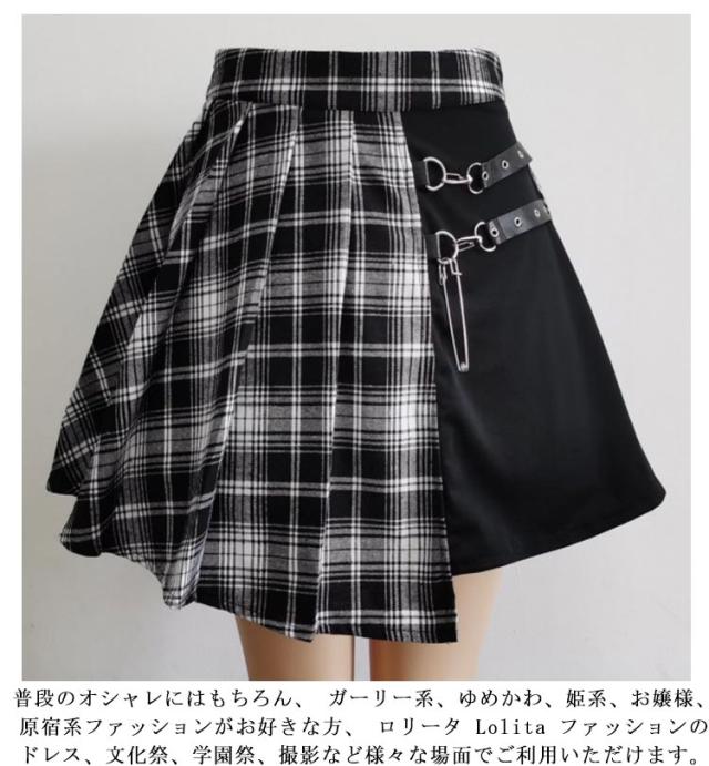 ミニ スプライス 個性的 原宿 フレア 膝上 パンク ベルト ハイウエスト レディース ゴスロリ チェック柄 ストリート系 ゴシックスカート Aライン イベント 衣装 コスチューム 地雷系 ストリート系 JK制服 プリーツスカート