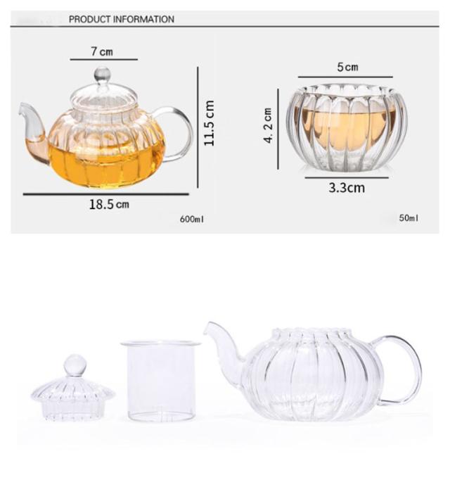 ティーポット 耐熱ガラス おしゃれ カボチャ 直火 ガラス ガラスポット セット 茶こし付き 紅茶ポット コーヒーサーバー コーヒーポット ティーウォーマー ティーグラス ティーセット ハーブティー アフタヌーンティー クリア 母の日 敬老の日 プレゼント ギフト 送料無料