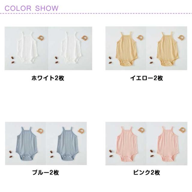| 2枚セット ベビー肌着 キャミソールロンパース 綿 通気 快適 66cm 73cm 80cm 90cm 綿のさらさら快適なメッシュ素材!通気性バツグンで汗っかきのベビーにピッタリ 肩や腕が動かしやすい袖なしタイプ。 股下スナツプボタン式だから毎日のおむつ替え・お着換えがスムーズです。 ご出産準備やお祝いのギフトにもぜひ! | |