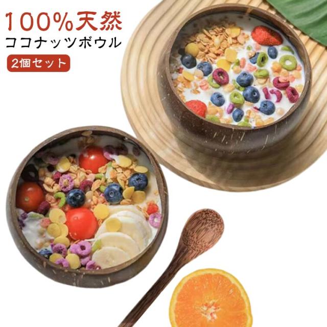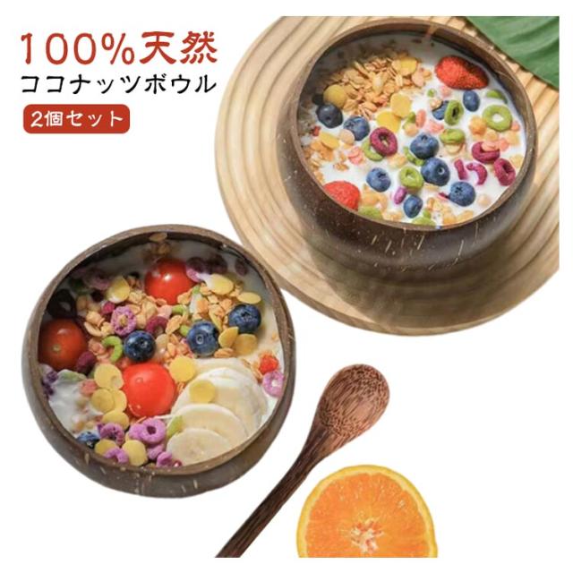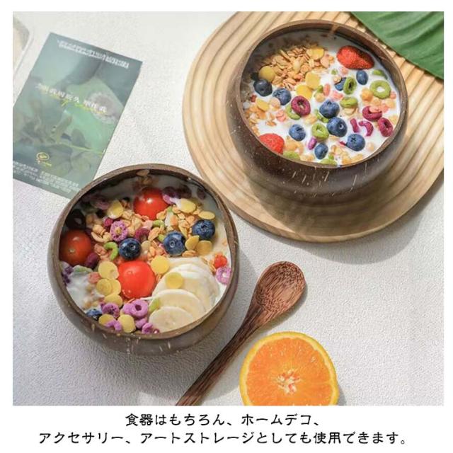 2個セット!ココナッツボウル 環境に優しい ココナッツシェル スムージーボウル ライス デザート サラダ キッチン ダイニング 装飾用 人気 食器 おしゃれ 可愛い ご飯茶碗 デコレーションボウル オブジェ 雑貨 ディスプレイ ココナッツウッド 天然素材