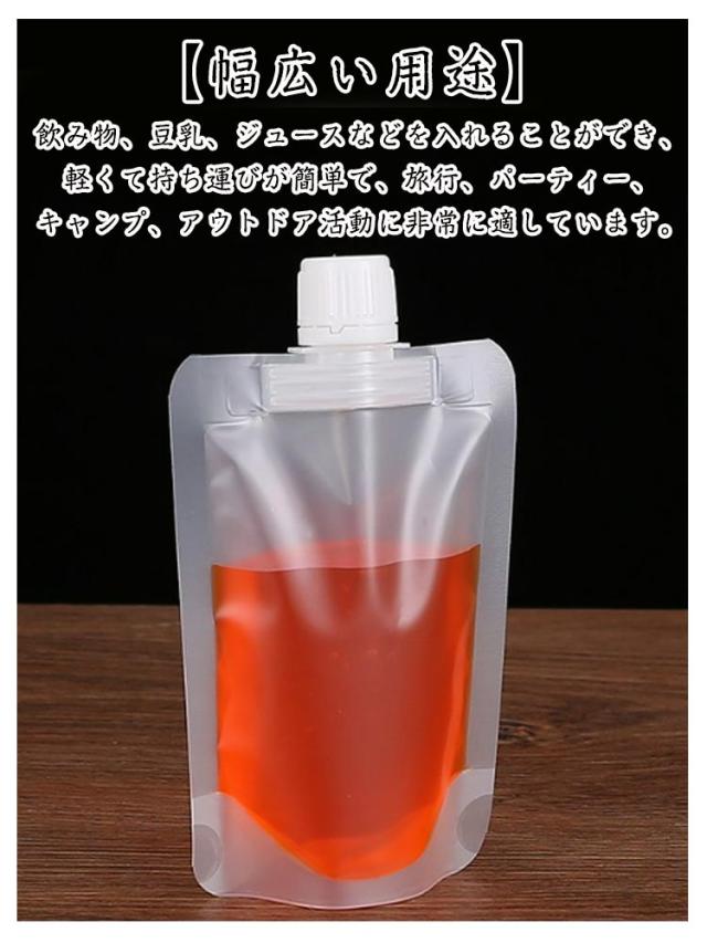 100個入り 250ml 保存容器 380ml 詰め替え 透明 スタンドパウチ 耐高温 計量カップ付き ドリンクパック 200ml 広口 100ml 液体容器 150ml ジュースパック ゼリー ジュース ファンネル付き 自立式 テイクアウト用 500ml