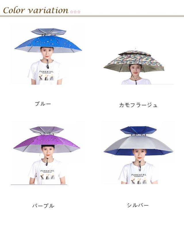 ハットアンブレラ メンズ 折りたたみ アンブレラ かぶる日傘 ハッと レディース かぶる傘 ハッと 釣り傘 レジャーハット 農作業 ガーデニング 釣り つば広帽子 頭にかぶる傘 帽子の日傘 両手解放可 日よけ 遮光 晴雨兼用