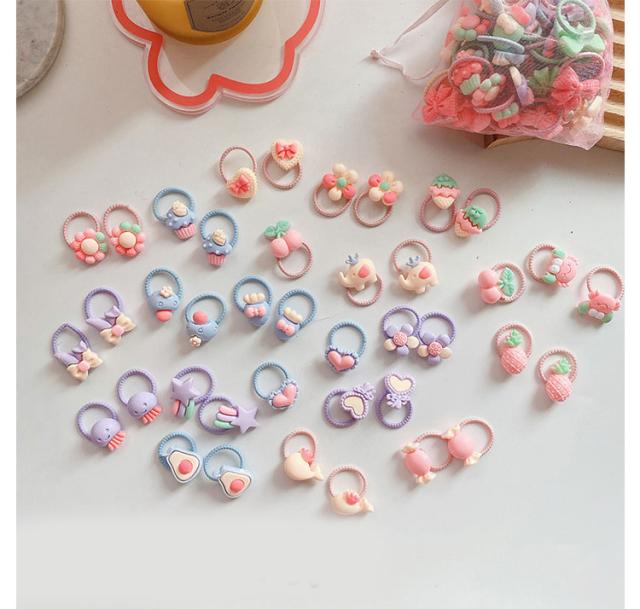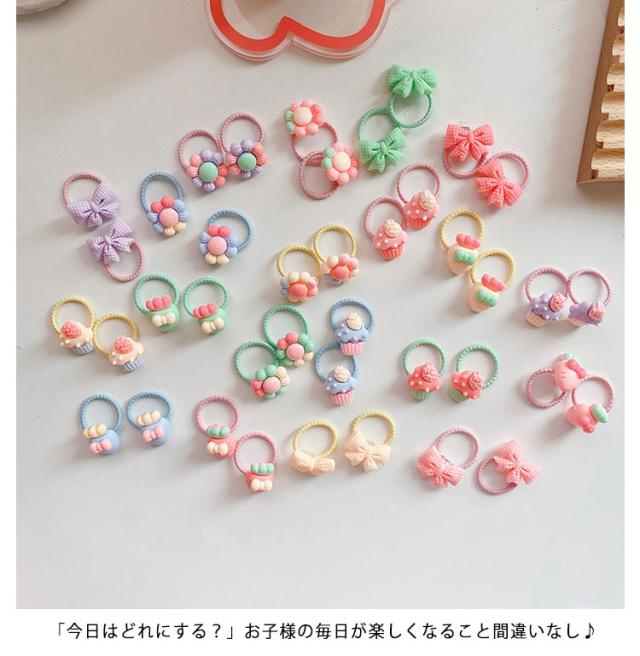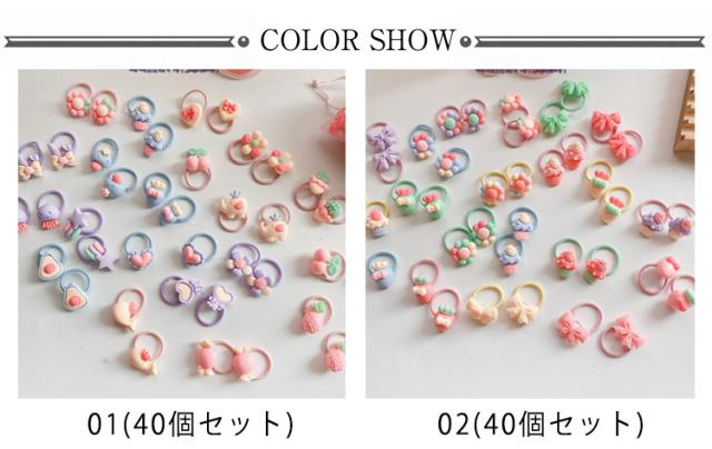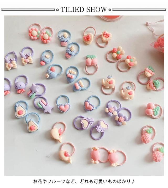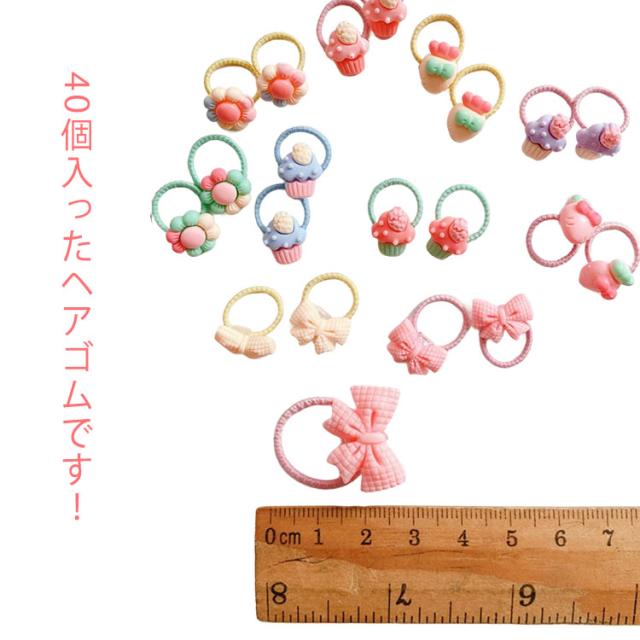 | 40個入ったヘアゴムです! お花やフルーツなど、どれも可愛いものばかり♪ 「今日はどれにする?」お子様の毎日が楽しくなること間違いなし♪ | |