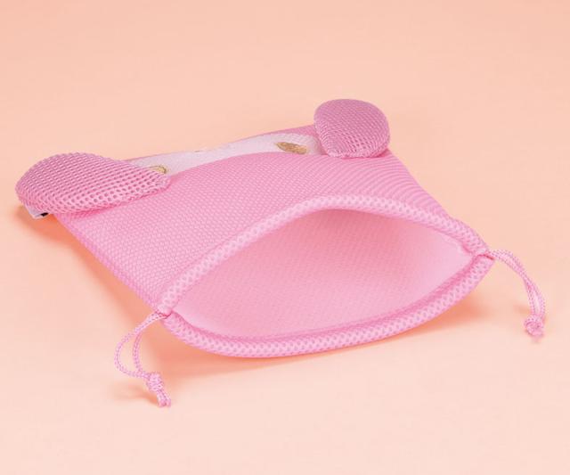 まるごと洗えていつでも清潔、メッシュ素材の巾着袋