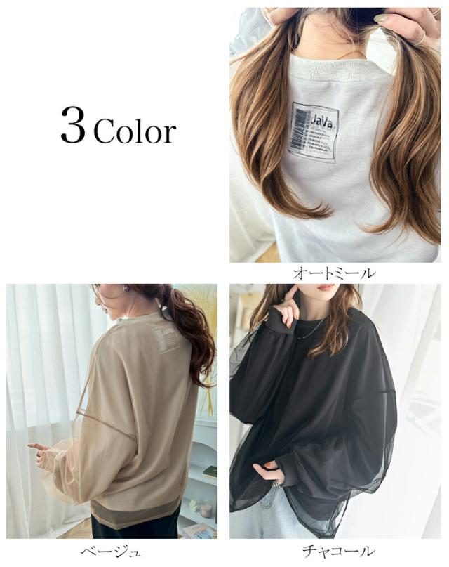クラシカルエルフ 冬新作 java ジャバコラボ トップス Tシャツ レディース チュール レイヤード バック プリント ミニ裏毛 長袖 ロンT レイヤードコーデ ゆるっと オーバーシルエット 体型カバー 大きいサイズ 2024aw jv1010318 trend_tops