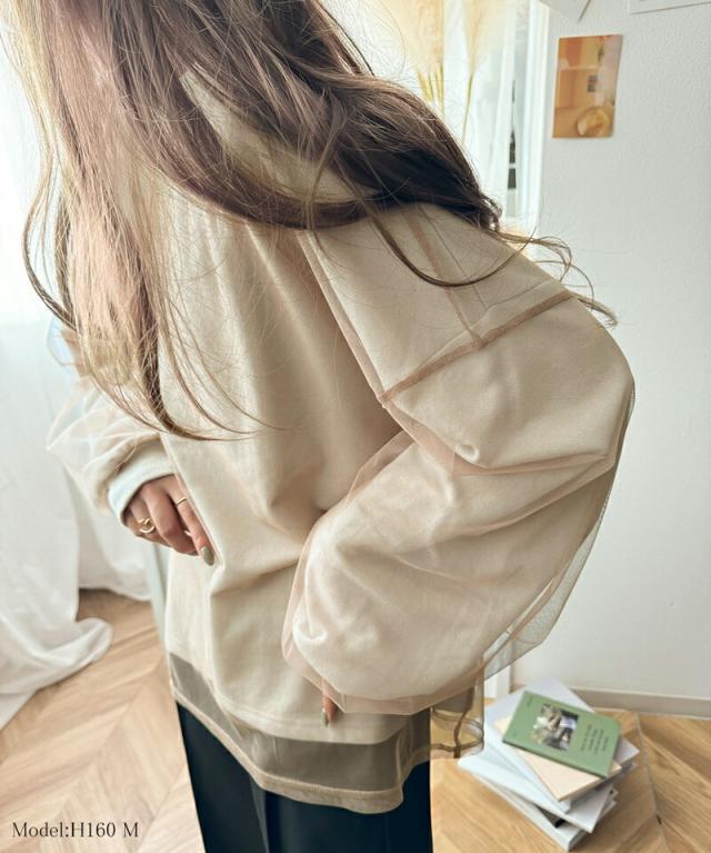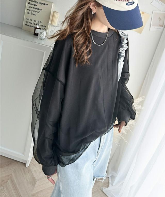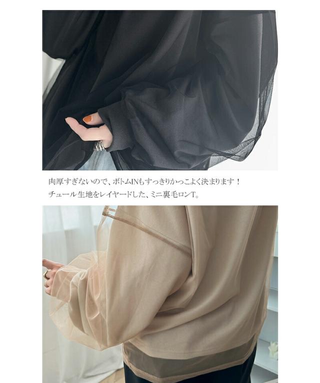 ★《JaVa ジャバコラボ》1枚でコーデが決まる。チュールレイヤードバックプリントミニ裏毛長袖ロンT★