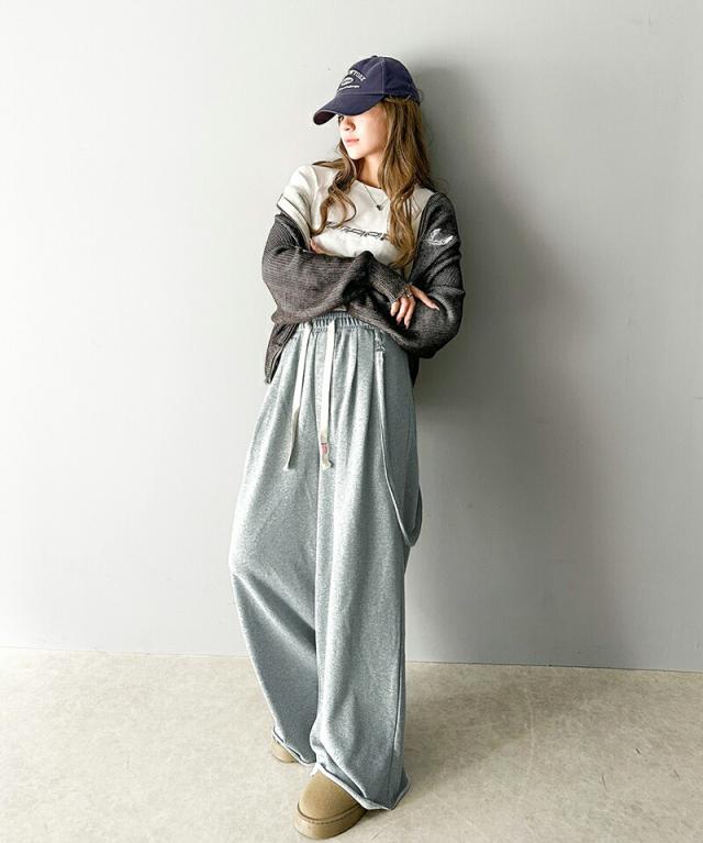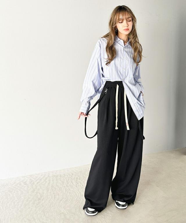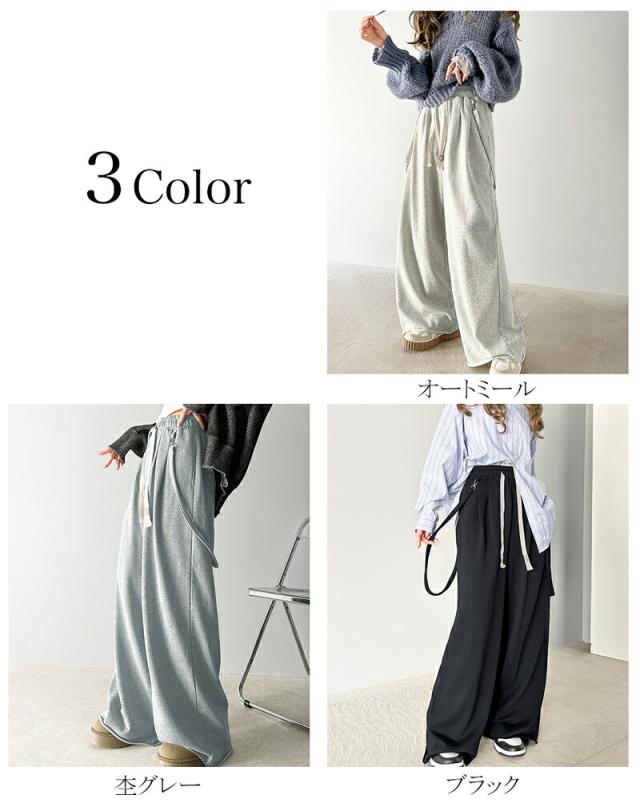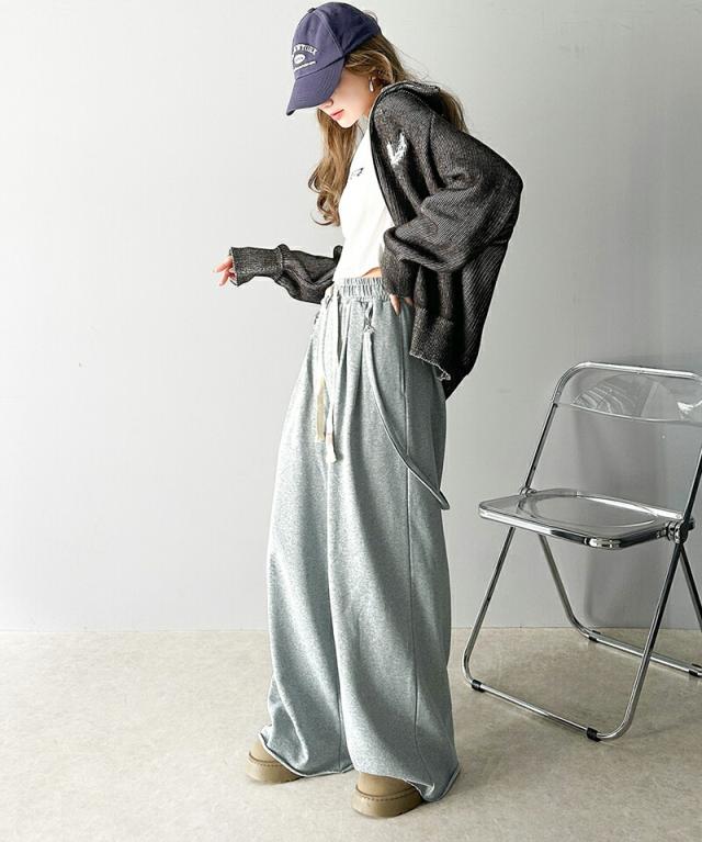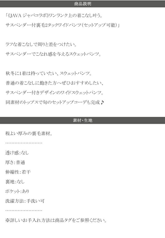 クラシカルエルフ秋新作 java ジャバコラボ ボトムス パンツ レディース サスペンダー 付 裏毛 2 タック ワイドパンツ セットアップ可 ウエスト シャーリング ロングシーズン 大きいサイズ 2024ss jv1260216