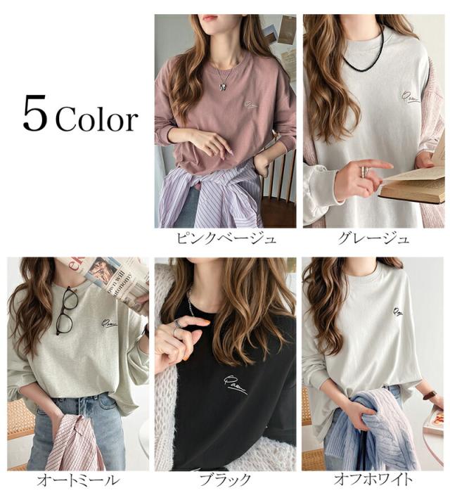 クラシカルエルフ 冬新作 トップス Tシャツ レディース シンプル カジュアル 綿 100% ワンポイント 胸 刺繍 シンプル ロング Tee ゆるっと オーバーサイズ 着回し ロングシーズン 大きいサイズ 2024aw ce1260187