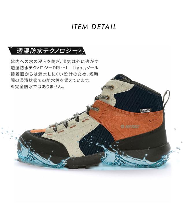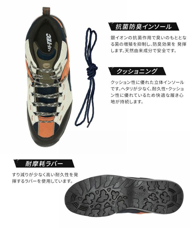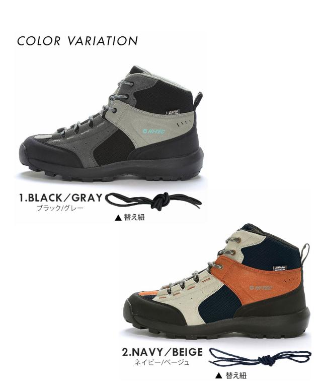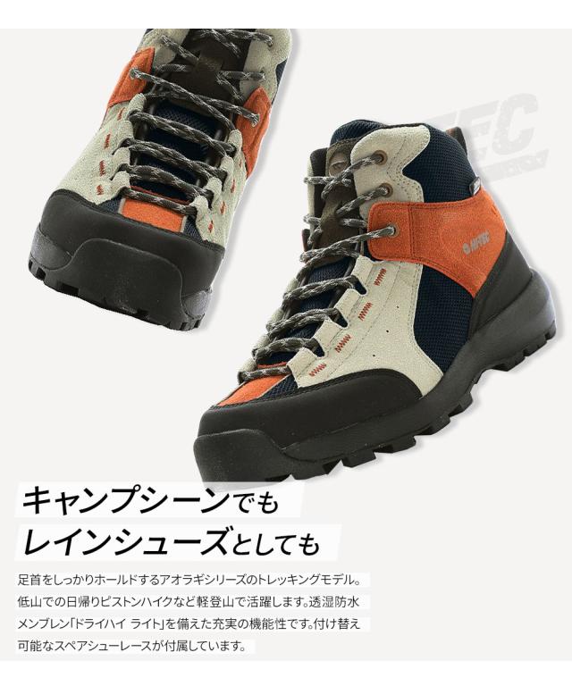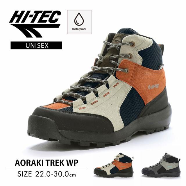 ハイテック トレッキングシューズ メンズ レディース ハイカット 抗菌 防臭 軽量 防水 アウトドアシューズ 軽登山 アウトドア キャンプ 靴 替え紐付き ブランド グレー ベージュ HI-TEC HT HK044 AORAKI TREK WP