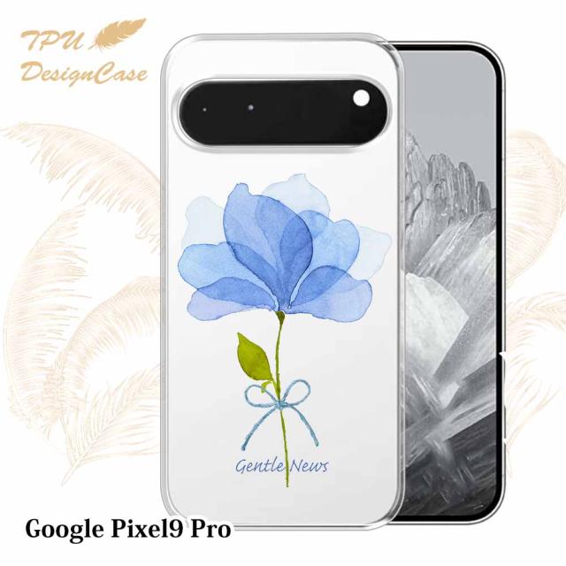 【TPUケース】 Google Pixel 9 Pro ソフトケース TPU クリアケース 透明 グーグルピクセル9プロ ケース おしゃれ カラフル かわいい 花 花柄 青い花 嬉しいニュース