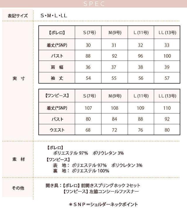 ■素材:【ボレロ】、ポリエステル97%、ポリウレタン3%、、【ワンピース】、表地 ポリエステル97%、ポリウレタン3%、裏地 ポリエステル100%