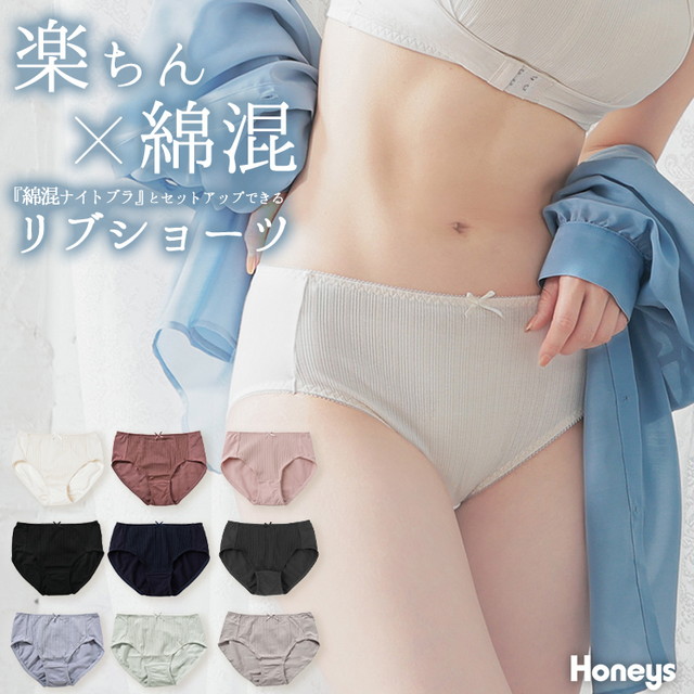 下着 アンダーウェア ショーツ 綿 コットン ナチュラル シンプル くすみカラー 無地 レディース Honeys ハニーズ 綿混リブショーツ