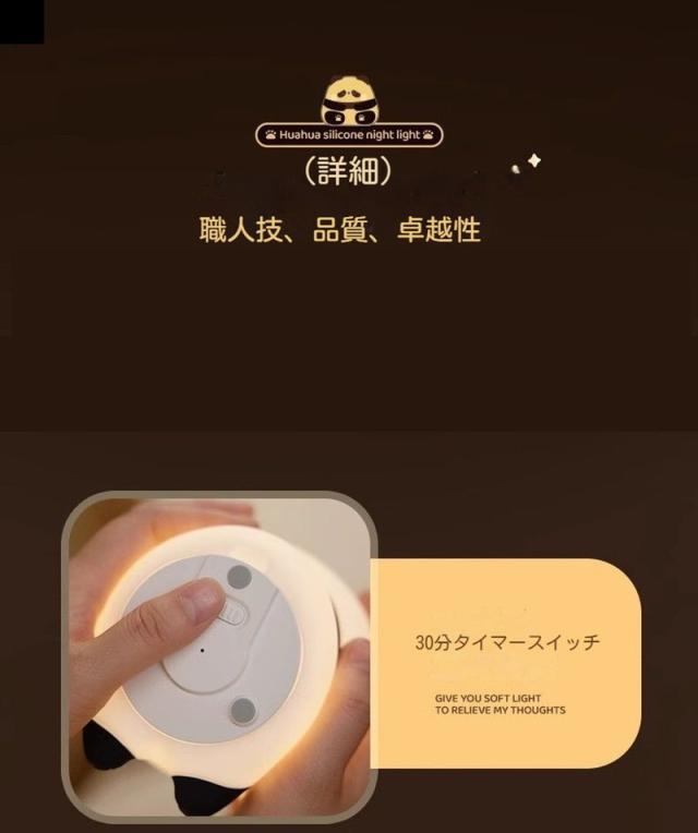 ナイトライト パンダライト 授乳用ライト タイマー 明るさ調節 おもちゃ シリコーン おやすみライト デスクライト 卓上 間接照明 充電式