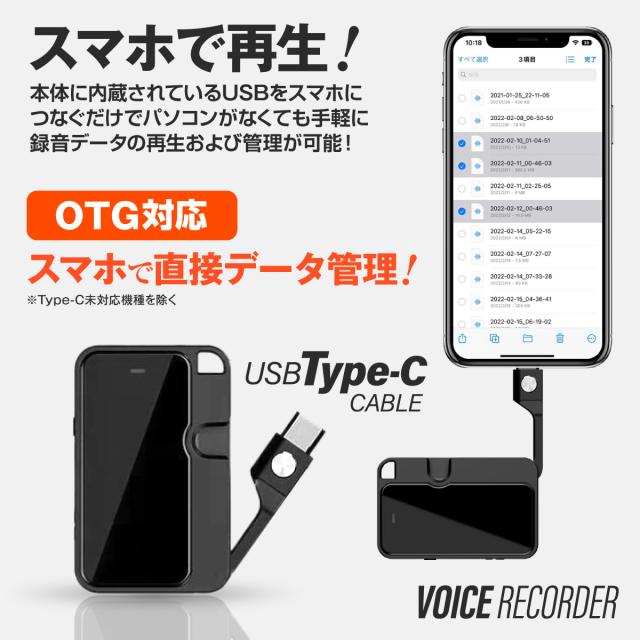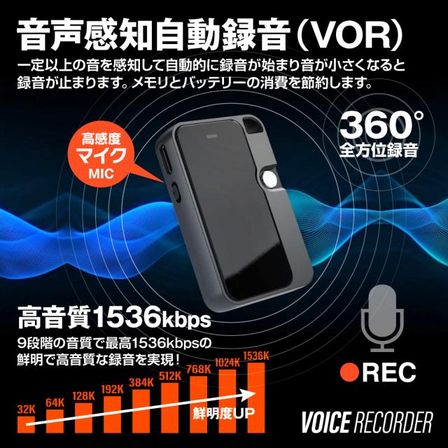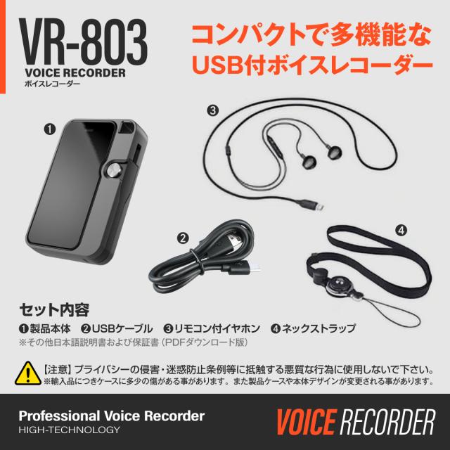 ボイスレコーダー 録音 USB付 コンパクト [VR-803] 簡単録音 音声感知自動録音 VOR MP3プレーヤー OTG対応 日本語取説 32GB内蔵